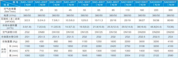德耐尔高(常)温水冷型冷干机工况条件与技术指标: