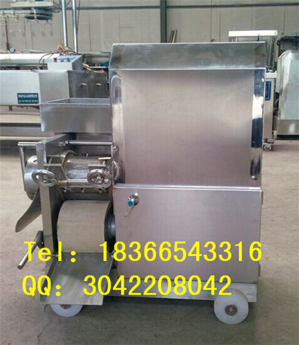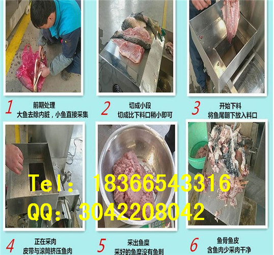 鱼肉采集机 全自动鱼肉采肉机 采集鱼肉的设备我们知道很多设备的型号是由设备的的产量来计算的,采肉机也是,当然最主要是按照滚筒的长度来划分的嘛,滚筒的长度关系着鱼的宽度,要是您想采取的鱼大于滚筒的长度,那就需要您事先将鱼给抛开,切断成滚筒长度以内的长条。大鱼采集的时候需要将鱼头、内脏给去掉,再就是往投料口放的时候记得先放鱼尾。这样比较好采集。