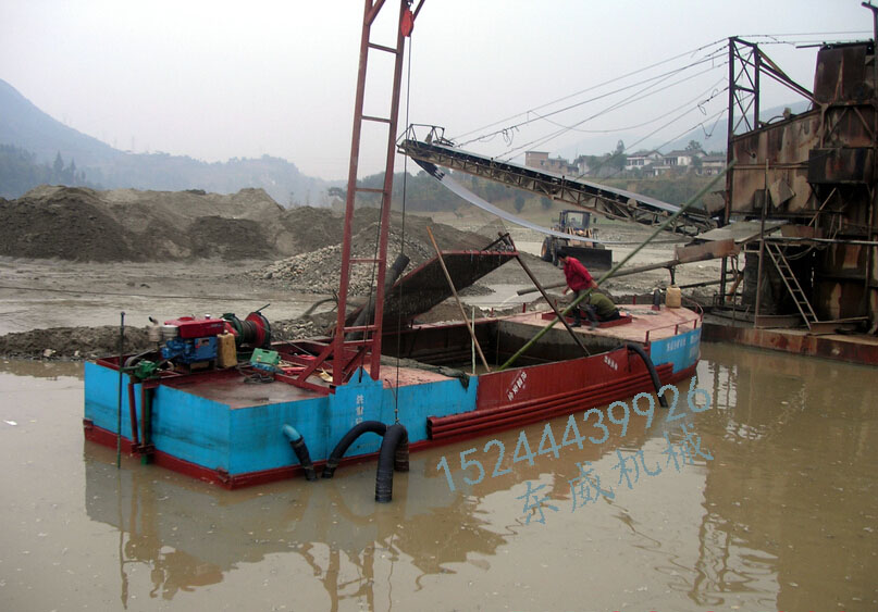 适用工况及特点:该抽沙设备主要适用于水库、河道、湖泊等宽车辆不能进入的阔水域作业,工作流程为抽沙运输船开到抽沙区域,利用抽沙船自带的抽砂系统将沙子抽进船舱,抽满船舱后运输至岸边,打开底舱门,将沙子卸到水里,再用岸边的小型抽沙机抽出并输送至码头或者直接用抽砂泵讲沙子从船舱输送至码头。该设备结构简单、工作量大、易损件少,抽出来的沙子含泥量低,无石块,沙子质量好,是近几年采沙、清淤比较常用的工具。