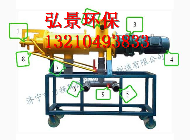 用设备配套的无堵塞液下泵将粪便水抽送至鸡粪挤干设备内,再由绞龙将粪便水逐渐推向机器的前方,同时不断提高机器前缘的压力,迫使物料中的水分在边压带滤的作用下挤出网筛,流出排水管。鸡粪挤干设备的工作是连续进行的,其粪便水不断的提升至鸡粪挤干设备体内,前缘的压力不断增大,当大到一定程度时, 就将出料口顶开并挤出挤压口,达到挤压出料的目的。为了掌握出料的速度与含水量, 可以调节主机下方的配重块,以达到满意适当的出料状态。如果抽入粪便水过多,会经溢液管排到原粪便水池,经螺旋挤压过滤分离出的粪便废水可直接派送至沼气池发酵沼气或排送至其废水沉淀池等。