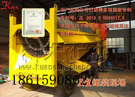 科大移动淘金设备是滚筒筛式淘金机械,由柴油机作为动力源,为筛分设备和水泵系统提供动力,属于集成化淘金设备。采用轮式底架,可以牵引车辆拖拽,便于在复杂地形的矿区进行移动作业。可根据原矿中黄金颗粒粒径配备如溜槽、离心机等初选装置收集沙金。