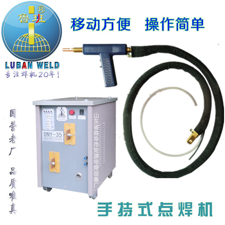 手持点焊机简要说明:一、性能特点: 1、 体积小、重量轻、焊机、焊枪都可移动,在结构上破除了老式焊机的固定电极臂旧模式,采用2m长电缆并配有手持式点焊枪,能深入焊件内部及特殊部件进行焊接,如将焊机悬挂可组成悬挂式点焊机。 2、 主变压器均为进口冷扎硅钢片。因此,主变压器功耗小,各型空载电流小。 3、主回路均采用可控硅无触点开关,电路关断时间快、准确、可靠。焊接时间可通过定时精确调节,焊接重复性好,且维修方便,可实现高品质焊接。 4、 焊接范围一般为0.3—3mm低碳钢、钢板及直径0.5mm—直径5mm线材可焊接碳钢、不锈钢、铁皮等多种黑色、有色、稀有、贵重金属及合金。目前广泛用于钢制家具,不锈钢制品,防盗门生产,厨房设备及钢丝网片补焊等..