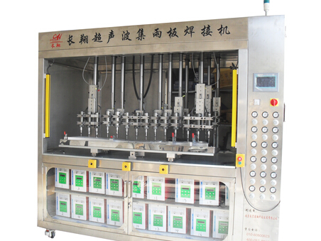 超声波全自动焊接机:又名汽车集雨板焊接机,汽车零部件熔接机,超声波熔接机,超音波焊接机,大型非标塑料焊接设备。本机是一款根据大型塑料工件的焊接量身定做而成,本机可一次多处焊接、熔接、粘接、链接等工艺。