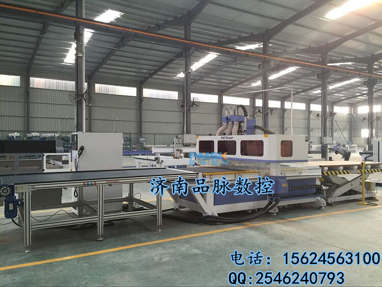 此款设备整体是经过大型数控五面铣加工,采用德国大型机床设备结构特点,从而保证了机器加工精度以及使用寿命。可以用于各种木质材料的直线切割、异形切割。浮雕雕刻、三维刻字等,满足了更多板式家具行业的工艺要求,经济、高效、方便。