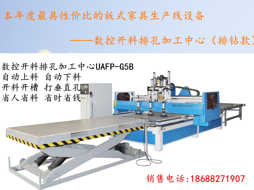设备功能:自动上料、开料开槽、开异形料、打垂直孔、自动下料;