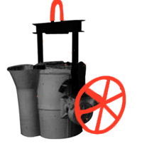 茶壶包最显著的特点:茶壶嘴样式的浇注、方便用于挡渣。茶壶包合理选择了回转中心,操作方便,浇注完毕后基本可自行复作。采用双蜗轮副传动,虽然制造要求高,但传动灵活自如,双向可逆性好。包体钢板较厚,包底结构采用锥度、底箍、焊接相结合的三重保险、即延长了使用寿命,又确保了使用者的安全。茶壶包的主体与吊杆、减速箱与手轮,均装有较链卡板可随时锁定。