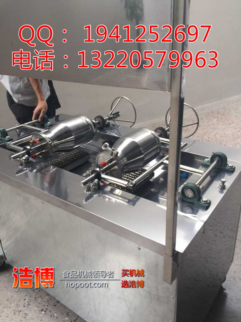 浩博食品机械嘣鸡炉采用电瓶电动旋转360度拌和翻滚,主动拌和翻炒,加热与拌和均匀,相对密封,焖炒作用格外好,特作出入锅十分快捷,漏斗进货,省时省力,嘣米鸡机具有主动出锅功用,操作简单,快捷,易懂等许多长处,使用该嘣米鸡机合作咱们赠送的特制配方和技能炒制的食物色泽与口味更佳,远距离香气年鼻,是目前嘣米鸡机市场上最领