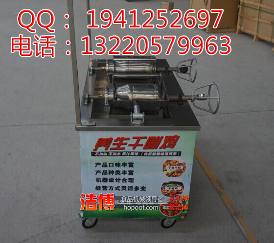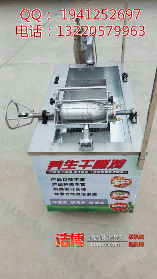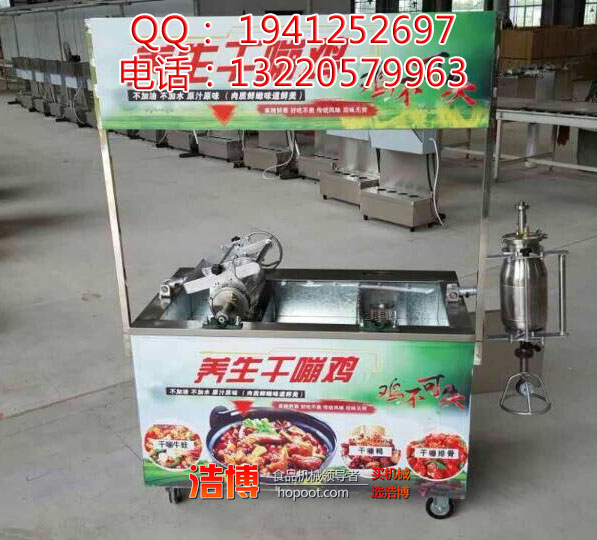 浩博食品机械干嘣鸡炉采用电瓶电动旋转360度拌和翻滚,主动拌和翻炒,加热与拌和均匀,相对密封,焖炒作用格外好,特作出入锅十分快捷,漏斗进货,省时省力,嘣米鸡机具有主动出锅功用,操作简单,快捷,易懂等许多长处,使用该嘣米鸡机合作咱们赠送的特制配方和技能炒制的食物色泽与口味更佳,远距离香气年鼻,是目前嘣米鸡机市场上最领先的理想小吃车设备,为了习惯各种不一样的场所使用,市场子上开发了很多种机型供挑选该项目来源于浩博机械王中王手摇旧式爆米花机盖子上装置一个耐高温的液压放气阀,也即是排气阀,奇妙使用旧式爆米花机功能原理,把板栗或生肉放入大炮内,均匀高温加热,当大炮气压增至需求时,板栗或肉类被高压压榨,肉的纤维、营养物质被充沛挤出。翻开排气阀放气后,被压榨的肉刹那间开释,骨血更加松软,吃起来滋味独特。