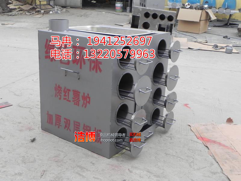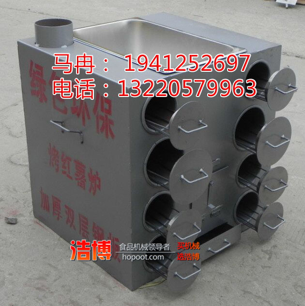 浩博销售的9孔地瓜炉,为节能保温性地瓜炉依密封钢管为加热导体,让火源与食品百分百完全隔离,在一定温度下全方位持续均匀烘烤,速度快,质量好,可移动,安全环保,烤出的地瓜口感甘甜,鲜香四溢,皮肉分离,色香味俱全,完全抛弃街头大铁桶烧烤山芋的遗缺,煤烟气,黑焦点,SO2和其它化学污染源等有害物质,全力维护休闲食品的质量安全,努力推广中国十大经典小吃文化(烤山芋/地瓜/红薯/玉米/黄梨)其为方形9孔地瓜机,依煤、碳、草、木等多种材料为燃料,无需电源,环保安全,日产量60-500斤,利润》200%。