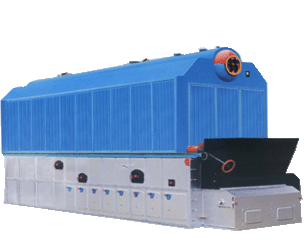 YLW型链条炉排有机热载体炉,是一种卧式多回程列管式新型热载体炉,在炉膛内布置了密排辐射受热管。炉膛左右二侧装有密集对流管束。采用轻型链条炉排实现机械加煤,配有鼓风机、引风机进行机械通风,并装有刮板式出渣机实现自动出渣。该炉前后拱采用新型的节能技术炉拱。燃料自煤斗落到炉排上,进入炉膛燃烧后,火焰经过后拱折射向上通过本体两侧燃烬室折向转到前烟箱,再由前烟箱折回锅内管束,通过后烟箱进入省煤器,然后由引风机抽引通过烟道至烟囱排向大气。
