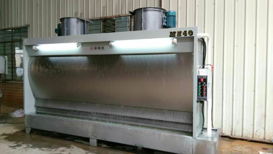 水洗式湿式除尘,粉尘遇水变泥浆,更加洁净空气.打磨房建议用夹心板或者其它板材或者伸缩棚围,吸尘效果更好.