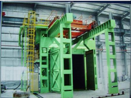 该系列抛丸机,因吊钩承载比较大,所以选择双梁桥式吊钩机构,由双梁支架、行走驱动机构、吊钩升降机构、自转机构、吊钩、动滑轮等组成;