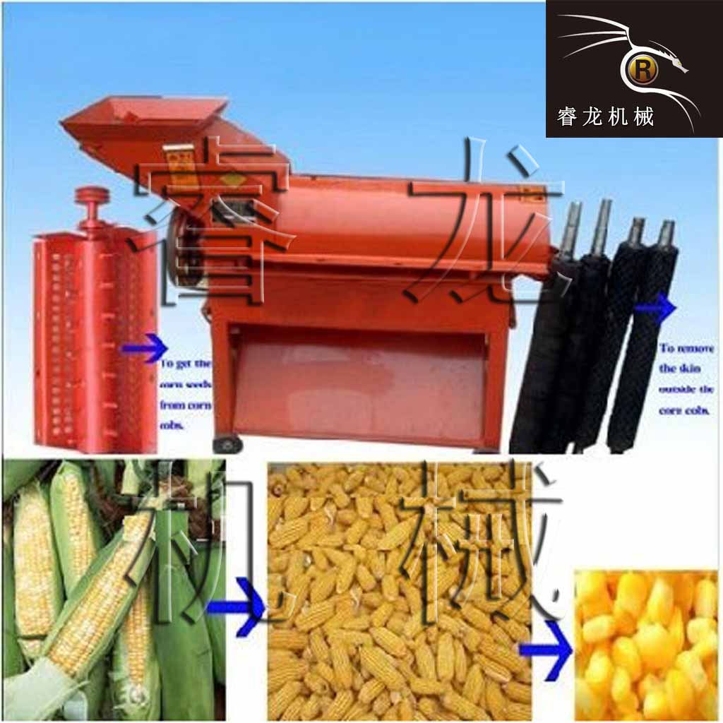 该种机器,脱粒的效率由滚筒的长度和直径而确定,用户可根据自己的脱粒效率,玉米芯从机器尾部排出,玉米丝,皮从风口排出。进料口设在机器上盖上部,睿龙玉米脱粒剥皮一体机,是家用小型玉米脱粒机,是家家户户的必备产品,这种玉米脱粒剥皮一体机体积小,