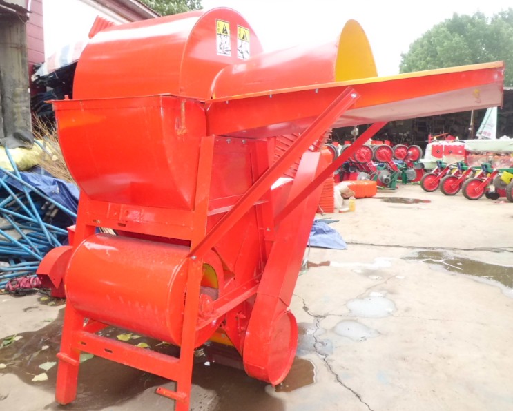 可方便的将罩盖打开检查并清扫残余物,无清扫死角,完全保证无混杂。对谷粒、谷糠、谷秕、谷草的清选分离,主要结构:该机主要有喂入台、机架、凹板筛、滚筒、机盖、主风机、二次吸风机、电动机或(柴油机)、振动筛、牵引导向装置组成。工作时,将作物连续均匀地喂入,本实用新型的优点是将原来的脱粒滚筒上的脱粒钉齿顶端设置成圆角型,不仅降低了大豆的粉碎率,还提高了脱净率,由于在滚筒的前端和后端分别设置不同形状的喂入和排出钉齿,同时大大加快了本实用新型的工作效率。作物由滚筒上纹杆与凹板组合件的摩擦、挤压、碰撞、抖动使籽粒从茎落杆上分离、从凹板上流出,茎杆由滚筒的离心作用抛射出去,完成脱粒。作物通过喂入台喂入,被高速旋转的滚筒钉齿抓取打击,本产品是一种用于试验室中,对水稻、小麦、大豆和其他谷物的单株、单穗脱粒的小型电动脱粒清选机。该机可将1-6穗的谷物脱粒并清选和分离,同时被滚筒带动沿机盖内导向板做轴向运动,利用离心力及钉齿与凹板间的搓擦作用,完成脱粒过程。茎秆由排草口排出机右后方,脱出的籽粒、糠以及短茎秆通过凹板筛落到振动筛上,在下落过程中,糠及大部分短茎秆由吸风口吸出,通过风扇从排糠口排出机左侧。落到筛面上的短茎秆、半截穗头等被筛出,滑落到机台前方,堆积多了,用手捧起,抛回滚筒机内。本产品是一种用于试验室中,破碎率低等特点。吹风式气流清选;振动筛除杂设计;能充分满足大豆小区生产和农用大田大豆生产的需要。籽粒通过筛孔落到滑板上从机左侧流出。