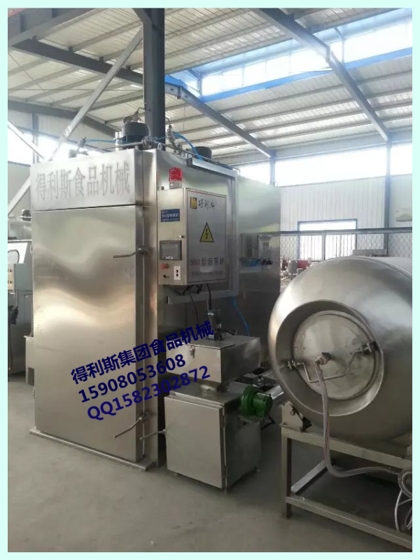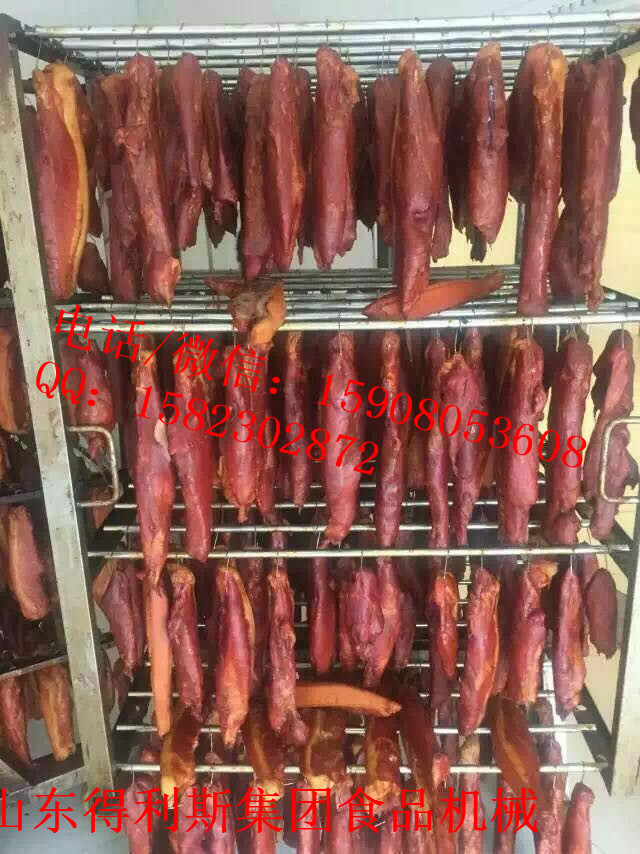 四川腊肉烟熏炉 肉制品烟熏炉 熏鸡烟熏炉得利斯公司的四川腊肉烟熏炉是集蒸煮、烘干、烟熏、上色于一体的烟熏炉,经过烟熏后食品的颜色好看,四川腊肉烟熏炉 肉制品烟熏炉 熏鸡烟熏炉还有一种烟熏后的香味,让人感觉香而不腻,也能达到环保效果,彻底代替了传统的烟熏炉方法,节省了工人的劳动了,提高工作效率,更增强了食品的口感及弹性。