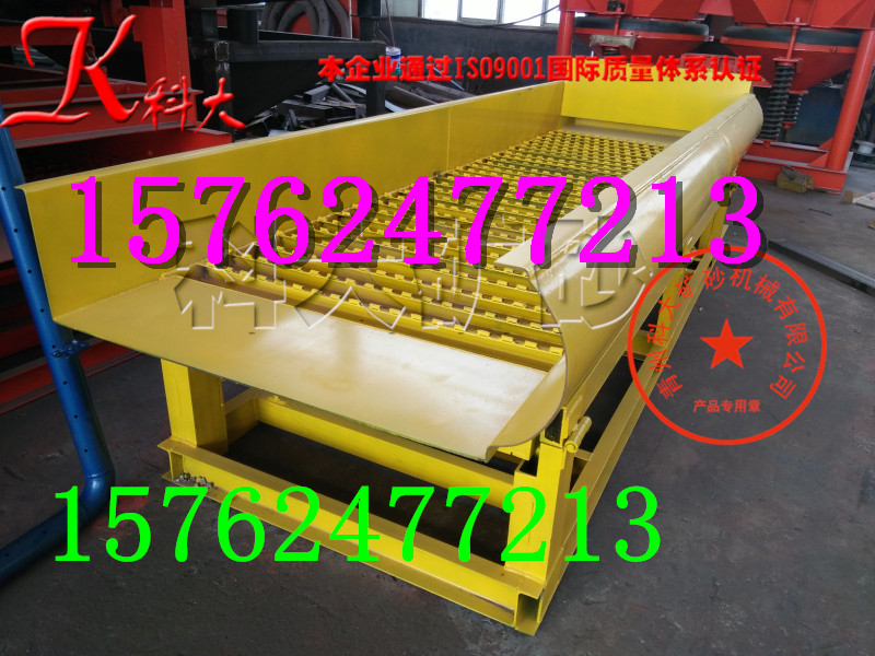 鼓动溜槽精矿产率小,富集比高,一次粗选就可以得到理想粗精矿,简化了选矿流程,降低了选矿成本,是理想的选矿设备,该设备适用于阶地砂金矿床和冲积金矿床的露天机械化开采,也是采金船上较为理想的粗选设备。