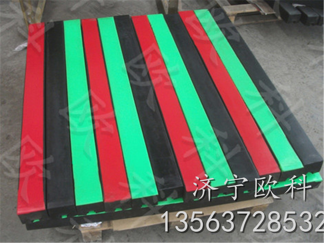 缓冲条表面特种超高分子量纳米材料,它具有低摩擦系数、高耐磨性、抗冲击性和自润滑等特点,能够承受装载物料的冲击和输送带运行中的摩擦,不会造成对输送带的损伤和附加功率的增大。