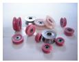 产品名称:瓷轮 详细说明: 瓷线轮用于漆包线改变方向及适量导向。其中间由精密陶瓷制作瓷圈,凹槽超精抛达Ra0.2,瓷圈内装有高速轴承,使漆包线与瓷圈之间的延迟滑动距离小于0.2mm,保护漆膜及保证漆包线的跳动在很小的范围之内。瓷线轮两侧的档板设计防止绕线时漆包线跳出,同时使绕线时的张力保持稳定。 瓷线轮(YH-2系列) -- 产品图例