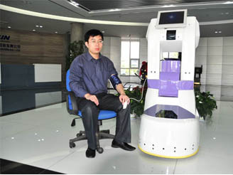 陪护机器人在养老院环境实现自主导 航避障功能,能够通过语音和触屏进行交互。配合相关检测设备,机器人具有血压、心跳、血氧等生理信号检测与监控功能,可无线连接社区网络并传输到社区医疗 中心,紧急情况下可及时报警或通知亲人。机器人具有智能聊天功能,可以辅助老人心理康复。陪护机器人为人口老龄化带来的重大社会问题提供解决方案。