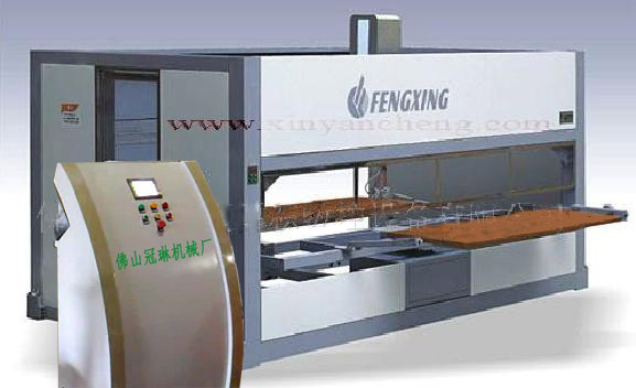 2) X轴采用V型滑台,8个滑台轴承规皮带传动,伺服电机1KW喷台移动速度1.8m/sec.