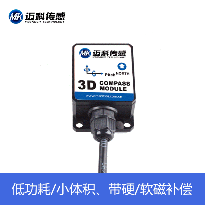产品输出载体的精确姿态,可以用于全姿态转动的系统中。此产品带有硬磁、软磁及倾角补偿,罗盘输出校准后的高精度测量值。集成专利技术的三轴磁通门,通过中央处理器实时解算航向,使用三轴加速度计对倾斜角进行航向补偿,使其在极其恶劣的环境下也能提供准确的航向数据。体积小、功耗低, 在石油测井、天线指向、车辆导航、姿态系统等众多领域得到广泛应用。