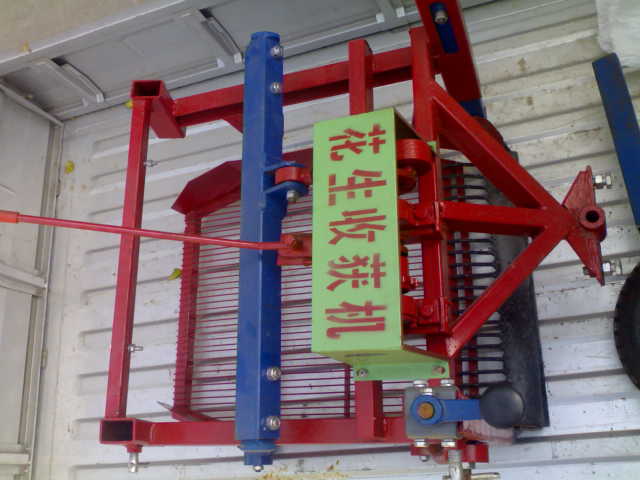 该在抛土轮和拨送轮的抛击作用下,土块被打碎并漏走一部分,然后经3个分土轮的指杆连续抛掷,将细土块和碎土粒通过圆弧形条杆筛排出,花生荚果及少量细根与细土则被抛至摆动式清选筛,机与10-18马力手扶配套作业,主要用于土豆 红薯 花生等地下薯类的收获,成堆等工序。花生收获机是指在花生收获过程中完成挖果、分离泥土、铺条、捡拾、摘果、清选等项作业的作物收获机械。收获作业时,挖掘铲将埋深约10cm的主根切断,使花生沿铲面升出地面铺放成条,收净率大于99% 破皮率小小于1% 。