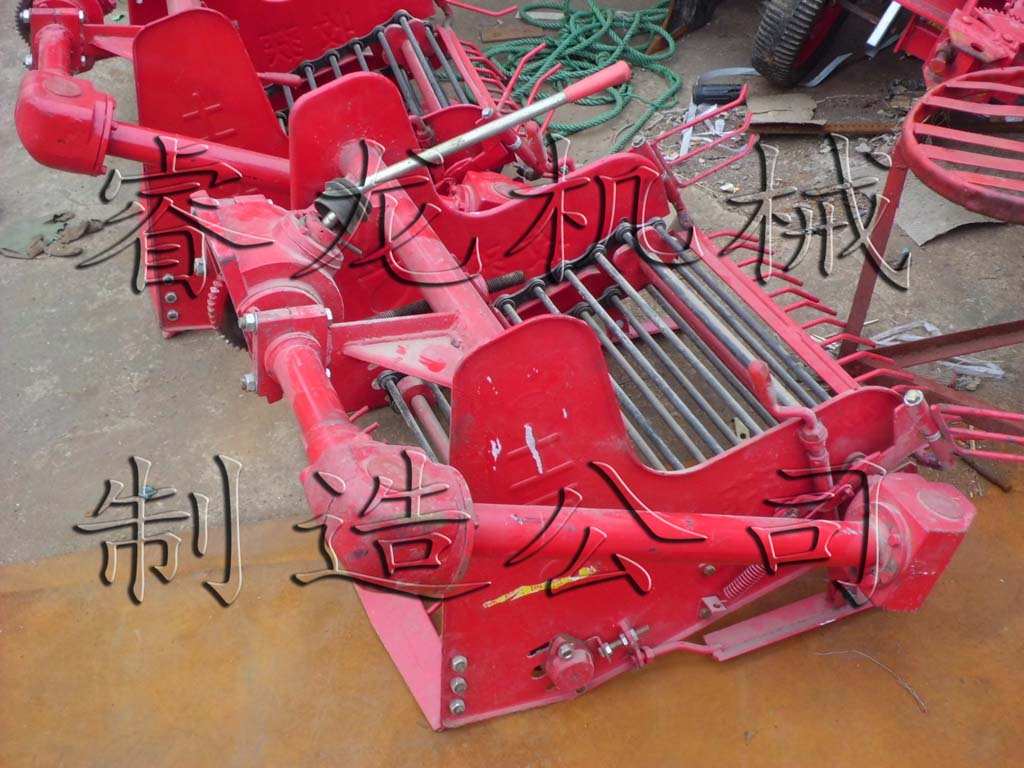 该细土等通过筛孔排出,花生果由筛面滑入两侧的果箱内。收获作业时,挖掘铲将埋深约10cm的主根切断,使花生沿铲面升出地面铺放成条,机与10-18马力手扶配套作业,主要用于土豆 红薯 花生等地下薯类的收获,成堆等工序。收获马铃薯、红薯等薯类根茎作物专用收获机械,还可兼收花生、胡萝卜、洋葱、大蒜等茎块作物农产品,铲后面有纵向排列的栅条,以便漏除泥土。收净率大于99% 破皮率小小于1% 。