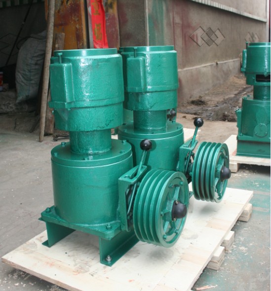 产品使用:电机直连颗粒机采用模板、压辊采用优质合金钢经特殊处理,饲料颗粒机主轴及平模在摩擦力作用下,带动压辊自转,压辊与模板产生高温使淀粉熟化,蛋白质变性凝固,在压辊挤压下从模孔中排出,颗粒饲料经甩料盘送出机外,通过调节切刀角度可控制颗粒饲料长短, 本机器还实现了不用三角带带动,机器直接和电机连接避免了皮带打滑死机的效果!