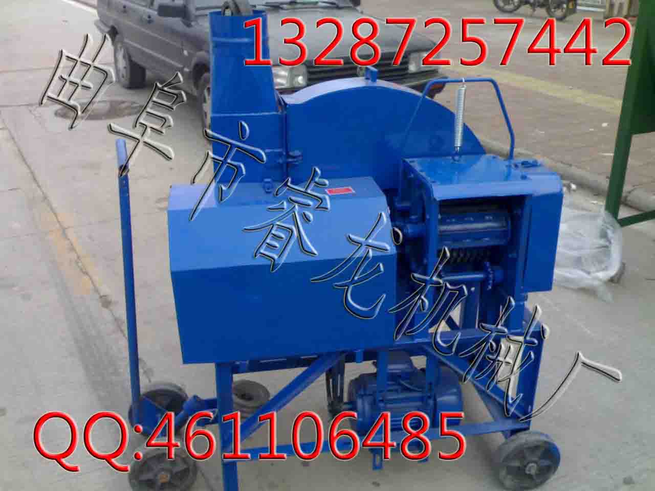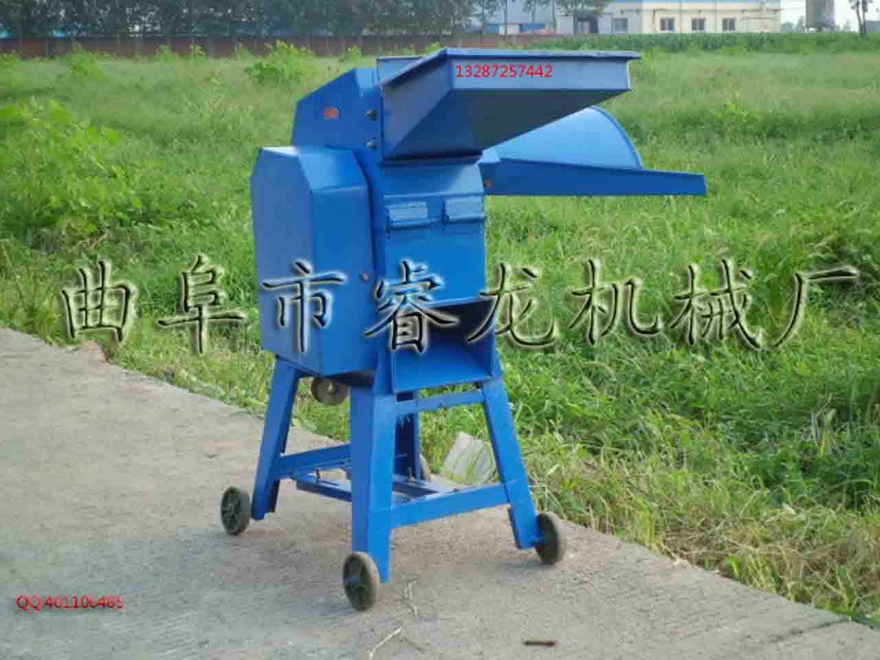 、稻草等各种农作物秸秆及牧草的农业畜牧机械铡草机。钢结构机架,体积小,重量轻,带四轮移动方便。