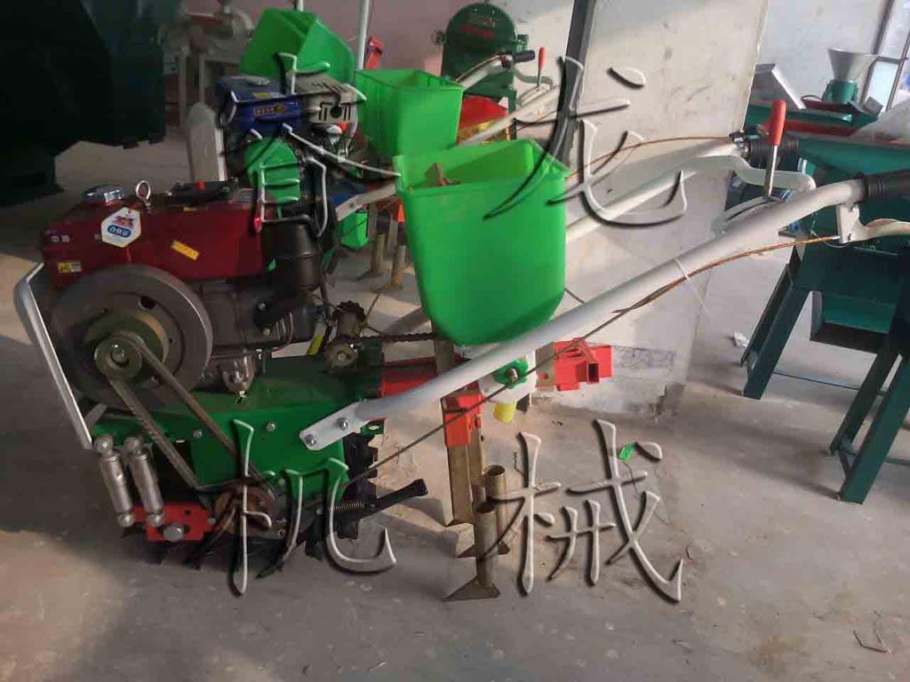 可以点播芝麻、黄豆、红豆、白菜籽、玉米、蚕豆等颗粒状种子。是广大农民朋友实现农业机械化的首选产品。培土器有左,右分土铲。选配正规企业生产的变速箱,优质名牌汽油机为配套动力。选配正规企业生产的变速箱,重庆优质名牌汽油机为配套动力。适用于所有旱田农作物垄间作业。是广大农民朋友实现农业机械化的首选产品 安装在耘锄架左,右滑块上,实现双行培土。