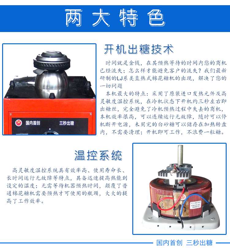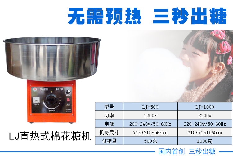 先昌李记是以直热式棉花糖机,三秒出糖棉花糖机器采用进口加热元件无需预热棉花糖机器 开机加热直热式电棉花糖机,全电棉花糖机, 彩色果味棉花糖机,豪华型棉花糖机,棉花糖技术培训为主.我公司主营:棉花糖机,棉花糖机器,全电棉花糖机,豪华型棉花糖机,电气结合棉花糖机电瓶棉花糖机,台式棉花糖机,炫彩拉丝棉花糖机,优质棉花糖机,商用棉花糖机,电热式商用棉花糖机,流动两用棉花糖机,增强型电动棉花糖机,水果味棉花糖机,棉花糖制作机,棉花糖机子,棉花糖制造机,自动棉花糖机,新款棉花糖机主营电热和燃气食品机械、制冷设备;烧烤炉,棉花糖机;爆米花机;关东煮机,烤肠机;美食小吃车;新品保温展示柜;冰淇淋机;炒冰机;制冰机;刨冰机;碎冰机等等。品种及规格达100多种,产品外型美观、工艺先进、结构新颖钢材优质、制作精细、质检严格、性能稳定、操作简便,公司产品配套齐全,价格极具竞争优势,适应于国内外市场的需求,深受广大用户的青睐和好评。