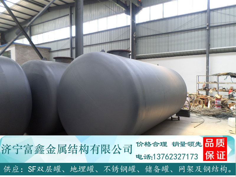 济宁富鑫金属结构有限公司双层油罐由于其有两层罐壁,在防止油罐出现渗(泄)漏方面具有双保险作用,再加上国外标准在制造上要求对两层罐壁间隙实施在线监测和人工检测,无论是内层罐发生渗漏还是外层罐发生渗漏,都能在贯通间隙内被发现,从而可有效的避免渗漏油品进入环境污染土壤和地下水。