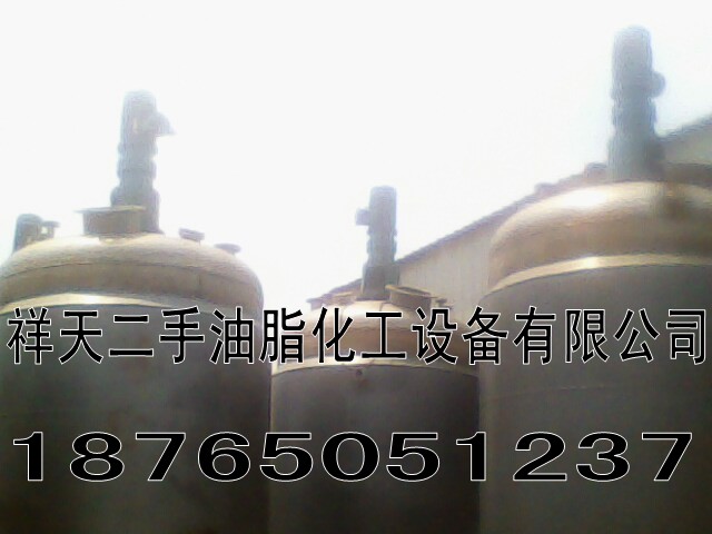 山东梁山祥天二手油脂化工设备有限公司,出售二手九成新三到十吨不锈钢反应釜,材质内胆不锈钢,外气包Q235,可选防爆电机,不锈钢列管冷凝器从10m2到300m2均有,现货也可客户需要订制,油脂用10吨精炼罐、脱色罐、5吨全不锈钢脱色罐、脱臭罐等,总重承诺;在我公司买二手油脂、化工设备可现场调试,解决你们购买二手设备的后顾之忧,热忱欢迎需要油脂、化工等设备的新老客户前来我公司购买订做。