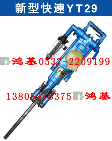 YT29型气腿式凿岩机是重型气腿式凿岩机,YT29A型气腿式凿岩机具有高效、低耗的特点,YT29A型气腿式凿岩机适宜于中硬和坚硬(f=8-18)岩石上钻凿水平和倾斜孔,YT29A型气腿式凿岩机也可以向上钻凿锚杆孔。根据巷道断面大小和作业条件可以配套FT160A(或FT160B、160C),YT29A型气腿式凿岩机还可以与钻车或钻架配套进行干、湿式凿岩.