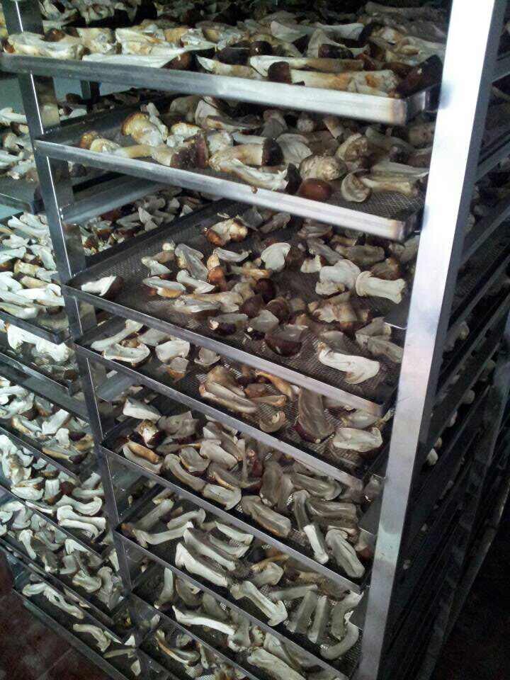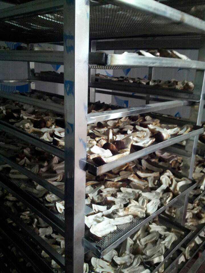 香菇在烘干房中可以使用层架式多层放置,每层高度10-15厘米,每个库房可以铺放10-15层香菇;