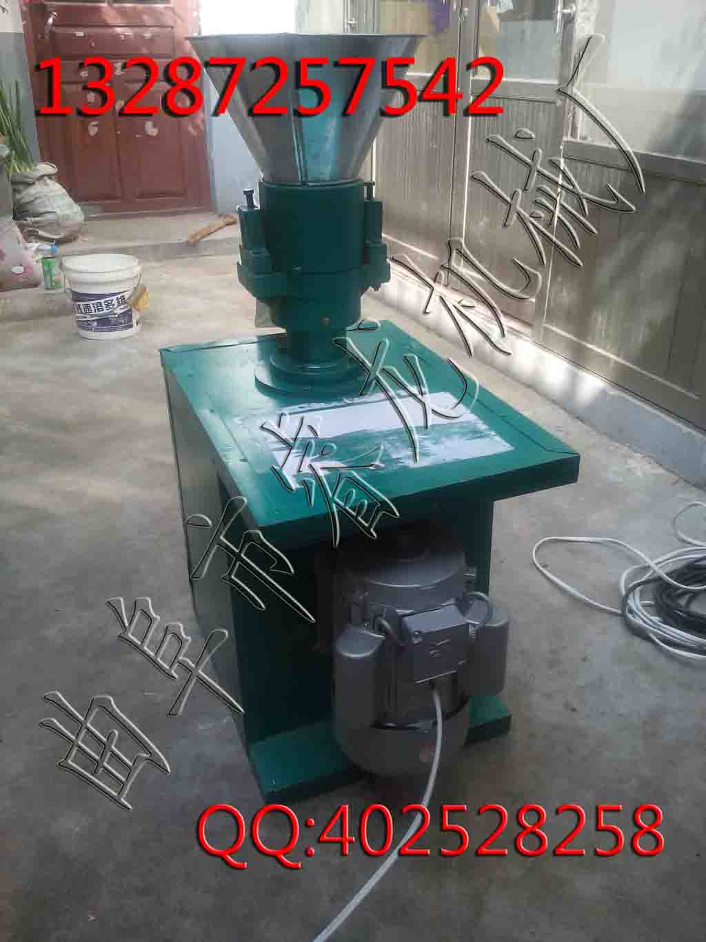 产品使用:电机直连颗粒机采用模板、压辊采用优质合金钢经特殊处理,饲料颗粒机主轴及平模在摩擦力作用下,带动压辊自转,压辊与模板产生高温使淀粉熟化,蛋白质变性凝固,在压辊挤压下从模孔中排出,颗粒饲料经甩料盘送出机外,通过调节切刀角度可控制颗粒饲料长短, 本机器还实现了不用三角带带动,机器直接和电机连接避免了皮带打滑死机的效果!