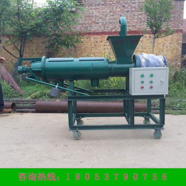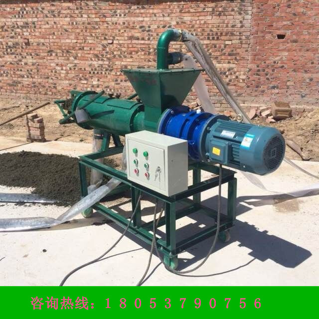 由配套的无堵塞液下泵将鸡粪水提升送至鸡粪干湿分离机内,再由绞龙将鸡粪水逐渐推向机器的前方,同时不断提高机器前缘的压力,迫使物料中的水分在边压带滤的作用下挤出网筛,流出排水管。牛粪脱水机的工作是连续进行的,其鸡粪水不断的提升至鸡粪干湿分离脱水机体内,前缘的压力不断增大,当大到一定程度时,就将出料口顶开并挤出挤压口,达到挤压出料的目的。