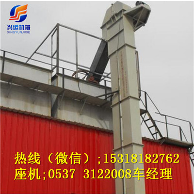 斗式提升机结构简单、运行平稳,掏取式装料,混合式或重力卸料,斗式提升机轮缘采用组合链轮,更换方便,链轮轮缘经特殊处理寿命长,下部如采用重力自动张紧装置,能保持恒定的张力,避免打滑或脱链,同时在料斗遇阻时,有一定的容让性能够有效地保护运动部件,物料温度不超过250