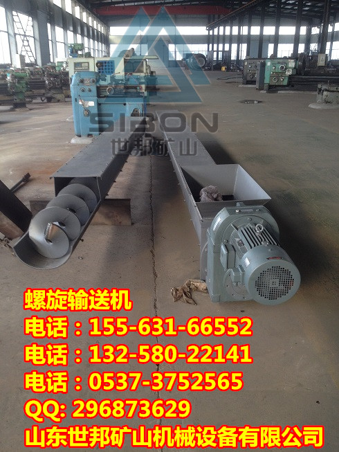 螺旋输送机和管式螺旋输送机。有轴螺旋输送机适用于无粘性的干粉物料和小颗粒物料.(例如:水泥、粉煤灰、石灰、粮等)而无轴螺旋输送机适合输送机由粘性的和易缠绕的物料。(例如:污泥、生物质、垃圾等)螺旋输送机的工作原理是旋转的螺旋叶片将物料推移而进行螺旋输送机输送,使物料不与螺旋输送机叶片一起旋转的力是物料自身重量和螺旋输送机机壳对物料的摩擦阻力。螺旋输送机旋转轴上焊的螺旋叶片,叶片的面型根据输送物料的不同有实体面型、带式面型、叶片面型等型式。螺旋输送机的螺旋轴在物料运动方向的终端有止推轴承以随物料给螺旋的轴向反力,在机长较长时,应加中间吊挂轴承。