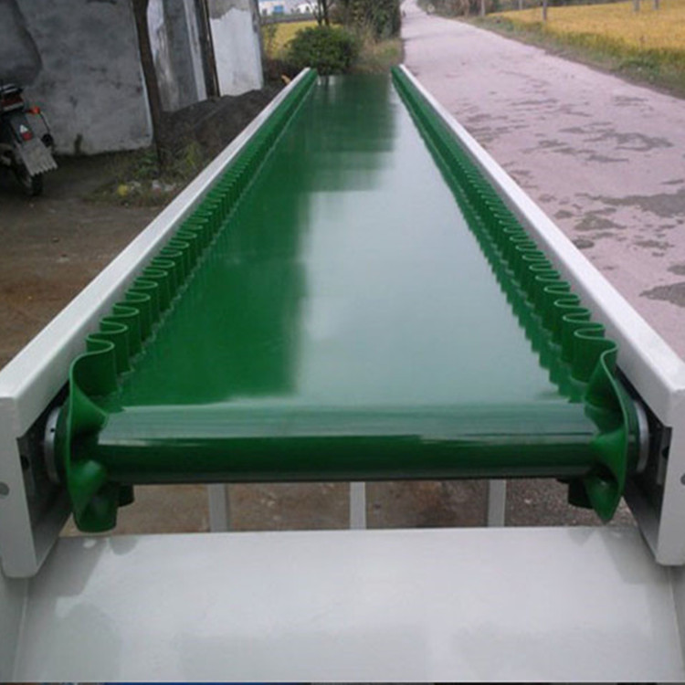 皮带机可输送的物料种类繁多,既可输送各种散料,也可输送各种纸箱、包装袋等单件重量不大的件货,用途广泛。结构形式多样,有槽型皮带机、平型皮带机、爬坡皮带机、侧倾皮带机、转弯皮带机等多种形式,输送带上还可增设推板、侧挡板、裙边等附件、 能满足各种工艺要求。输送带有橡胶、帆布、PVC、PU等多种材质,除用于普通物料的输送外,还可满足耐油、耐腐蚀、防静电等有特殊要求物料的输送。 采用专用的食品级输送带,可满足食品、制药、日用化工等行业的要求。 输送平稳,物料与输送带间没有相对运动,能够避免对输送物的损坏。 与其它输送机相比噪音较小,适合于工作环境要求比较安静的场合。 结构简单、便于维护;能耗较小,使用成本低。