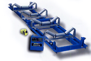 皮带秤工作原理:在生产工艺流程的皮带运输机中,安装合适流量的计量皮带秤架及测速装置,秤架上的称重传感器检测出通过该秤架称量段的物料流量,并将这个重量信号送到称重控制器进行重量积算,得到相应的累计重量。