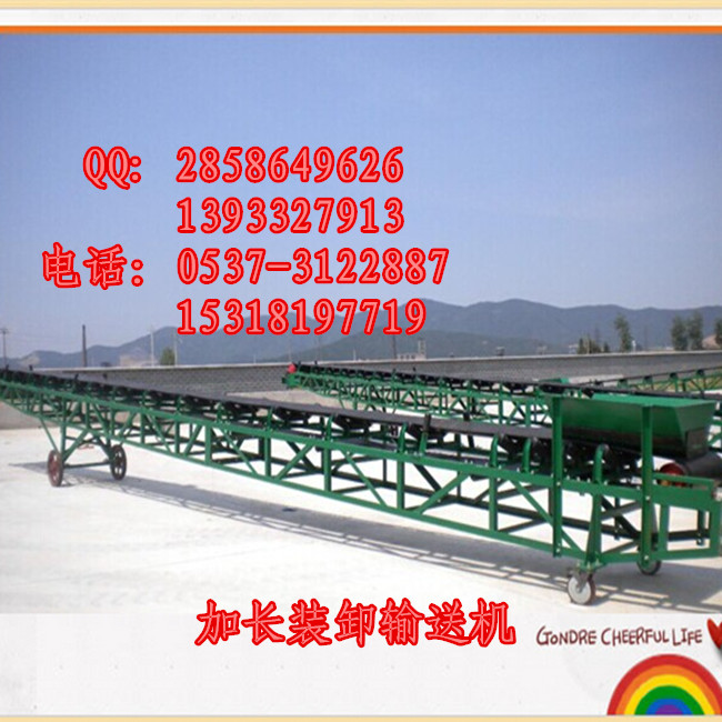 移动式输送机适应运送散装或包装的粮食及小颗粒物料的输送、装卸、码垛、倒仓多种作用,并可由多台串联或用其它机械联合配套使用。可以在露天库等场地使用。移动输送机是一种工程上使用较多的设备,主要用于装卸地点经常变动的场合,如:港口、码头、车站、煤场、仓库、建筑工地、砂石料场、农场等。该输送机可分为升降型及不可升降型两大类,输送带的运行靠电动滚筒驱动,整机的升降与运行均为非机动。装卸车输送机不使用时可以推至角落放置,不站工作场地,适用于货车、火车、轮船码头、航空物流等场地,也适用于工厂楼层间的物流输送。装卸车输送机大大的缩短了人工往返搬运物料的距离,提高工作效率,降低劳动强度,减少货物的损伤率,缩短装卸时间。
