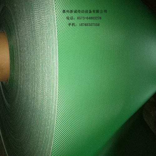 嘉兴浙诚传动设备有限公司主要生产绿色钻石纹输送带,绿色PVC钻石纹,绿色钻石纹环带是由工作面为花纹状的复盖胶和非工作面为平面的复盖胶与带芯构成的倾角输送带。嘉兴浙诚传动设备有限公司绿色钻石纹输送带,绿色PVC钻石纹,绿色钻石纹环带特点:适用于倾角为0~40°物料的输送,防止物料下滑。