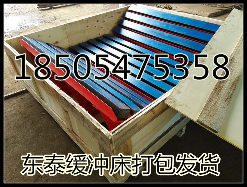 1、防撕裂:缓冲托辊组间距大,且托辊轴向与皮带运行方向垂直,物料中的钢筋等异物容易插入皮带,卡在托辊间,从而撕裂皮带;其次,缓冲托辊也可能在重力冲击下产生跳动而蹦出托辊架槽,造成无法回位,卡住皮带。缓冲床的纵向设置,与皮带运行的方向一致,可有效防止皮带撕裂。