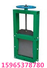 该闸门主要由框架、丝杆螺母、手轮、闸板组成,手轮(链轮)转动,丝杆带动丝杆螺母和闸版作水平方向的往复运动,达到闸门的启闭目。