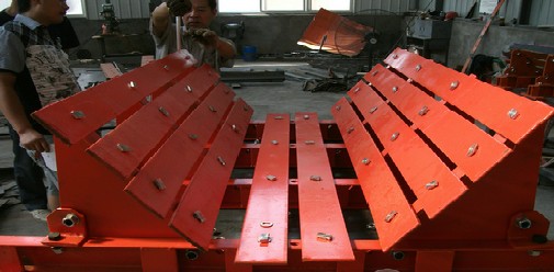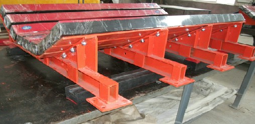 缓冲条的长度为1220mm、1400mm、1600mm,并可订做各种输送机上的缓冲床,有35°、45°