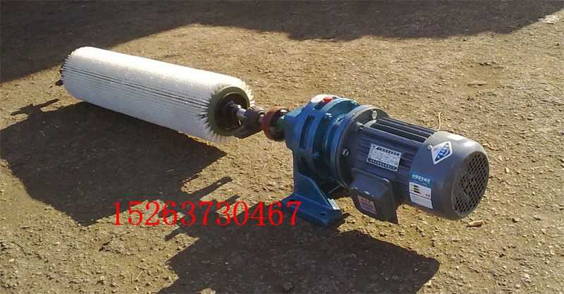 由电机和减速机驱动滚刷,滚刷的旋转方向与回程输送带的运行方向相反,通过刷尖与带面的适当接触,有效清除皮带表面的粘附物,达到清扫目的。可用于输送机的头部清扫,亦可用于中段清扫。