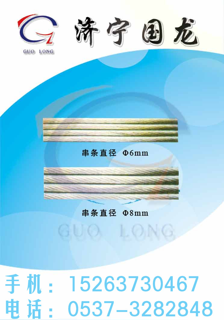 1.铠装不锈钢串条采用高强度不锈钢丝特殊缠绕绳心,外包耐磨不锈钢皮,强度大寿命长。