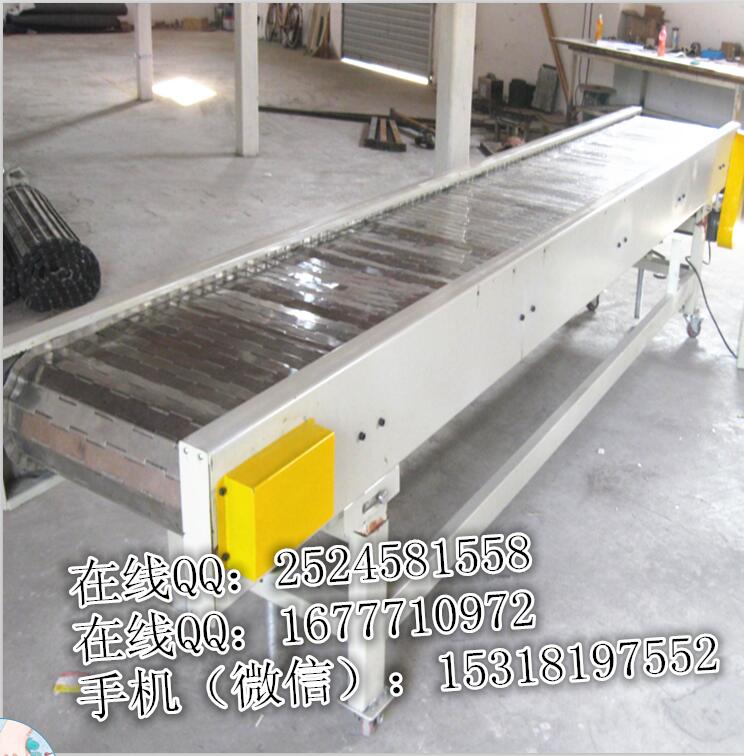 6、链板输送机一般都可以直接用水冲洗或直接浸泡在水中,设备清洁方便,能满足食品、饮料行业对卫生的要求;