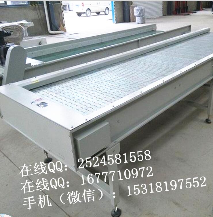 链板输送机是采用链板拖牵工件做平面传送运动,来达到生产工艺目的。流水线用组合式装配模式,工位数可按工艺要求设定。工位配置有电源插座、工具箱、料盒等,使整个流程达到快递、有序。一般由链板机或者叫板链机驱动。